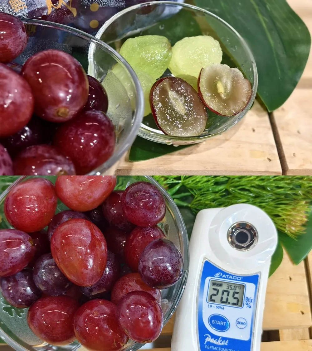 ※葡萄表面有機會出現果粉(由葡萄自身所分泌,為防止果實的水分蒸發的物),如在意的話的在享用前用清水清洗後品嚐即可。