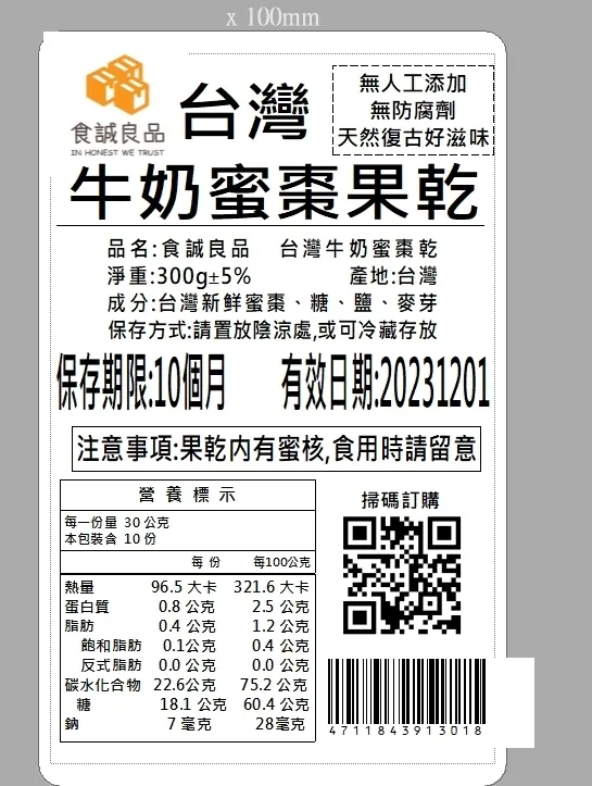 注意事項:商品為整顆牛奶蜜棗新鮮製作,內有果核,食用時請小心。