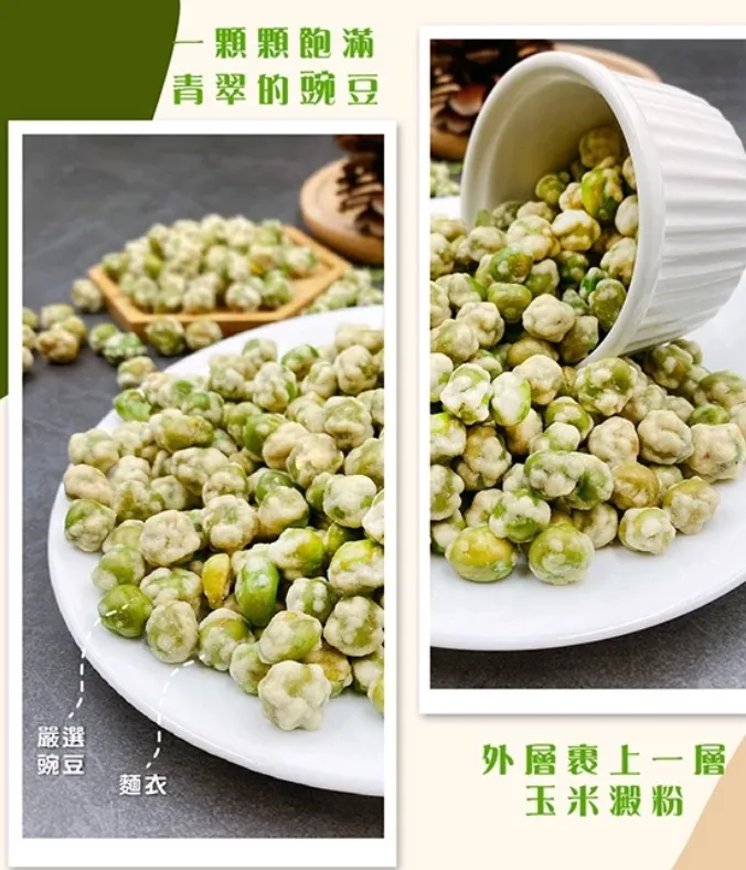 嚴選進口飽滿豌豆、經典配方製作,香酥滋味頗受好評,是三五好友聊天喝茶的良伴,更是多家航空公司頭等艙、商務艙的指定款零食,讓您不用出國也能有頭等艙的享受~!