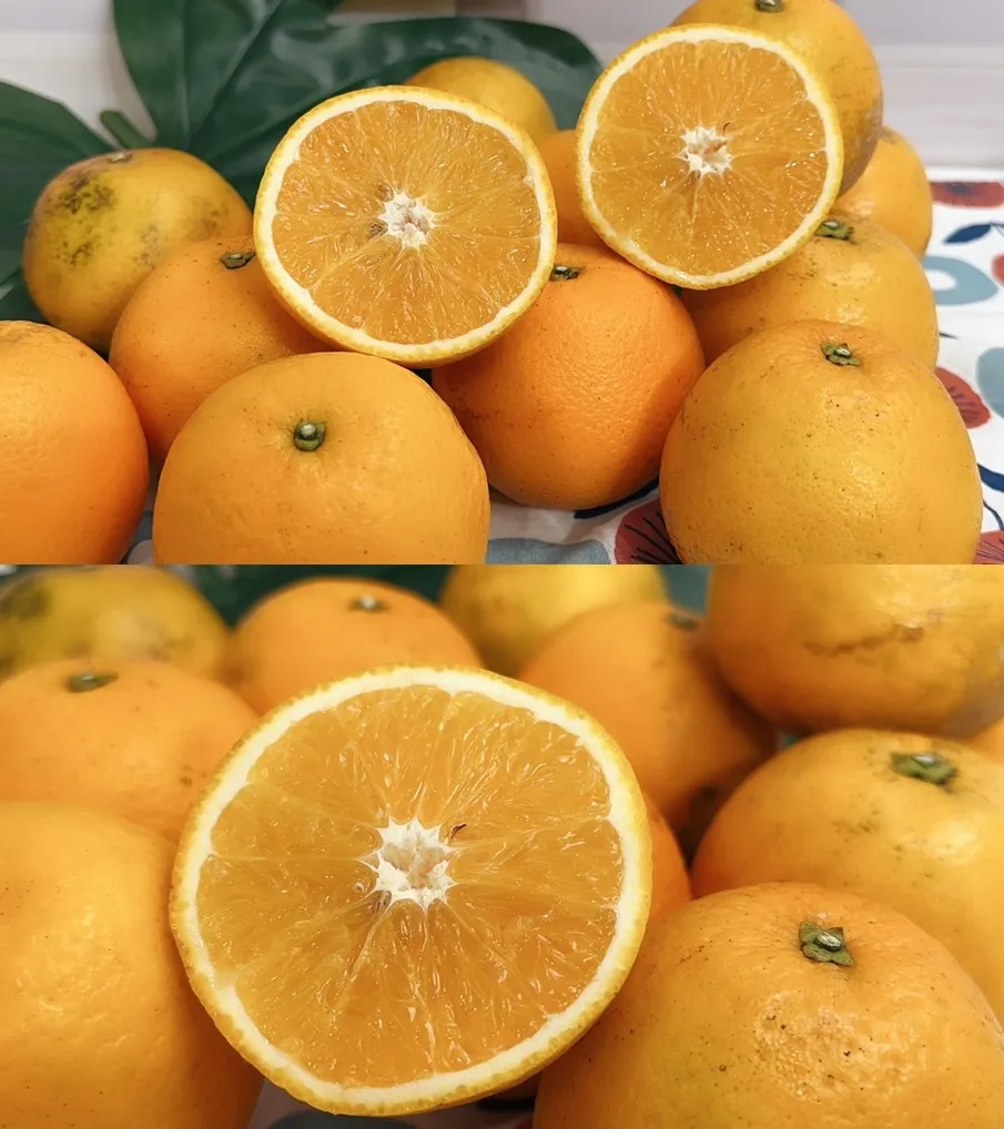 『晚崙西亞橙』現正鮮採上市!每年3月至4月上旬為臺東地區晚崙西亞橙成熟期。其果實較柳丁稍大,少籽(約4~6粒),肉質細緻多汁、香氣十足,品嚐時甜中帶酸,風味濃郁,頗受消費者所喜愛。目前正值果實成熟採收期也是開花期,果園內橙黃色的果實與白色小花形成花果共賞之美麗景觀。