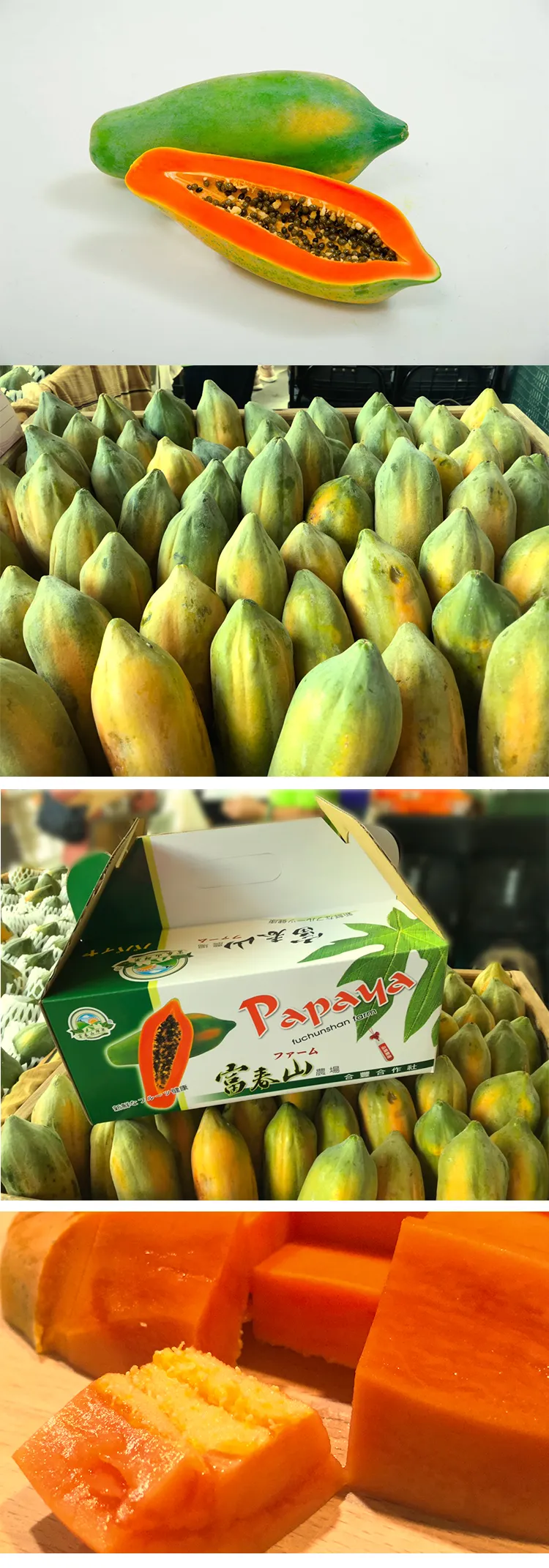 富春山農場位於大崗山北麓,以栽種網室木瓜台農二號及日陞為主,網室設施栽種降低了病蟲害,用自然發酵菌灌溉,與大自然為伍,友善環境,健康養生的木瓜由此而生。
