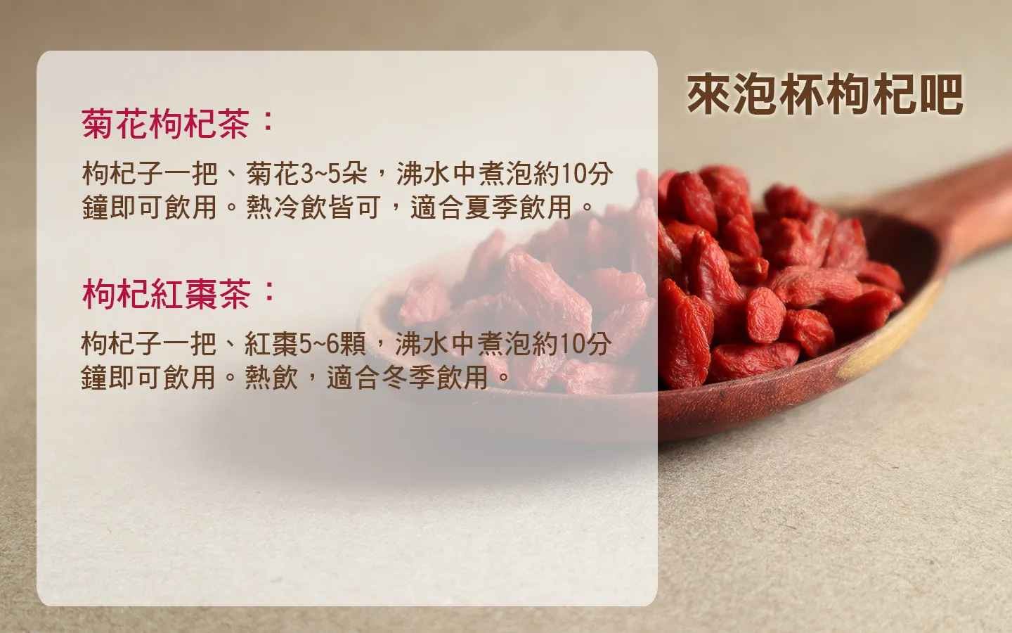 枸杞夏季泡茶,冬日煮粥入菜,