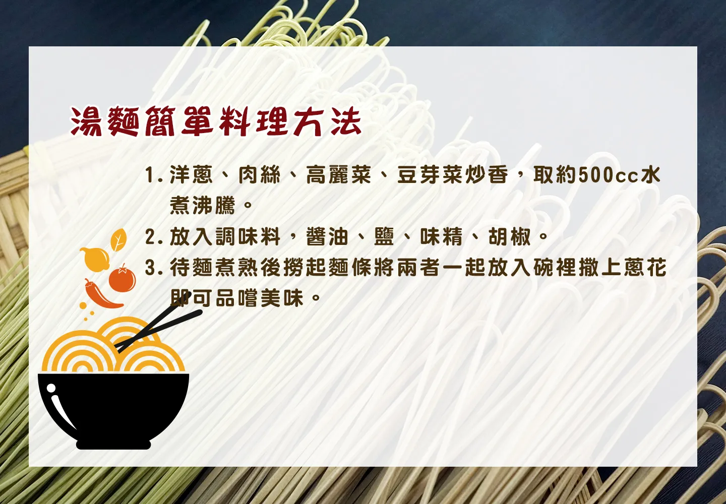 ●嚼勁十足、耐泡性佳、口感滑溜