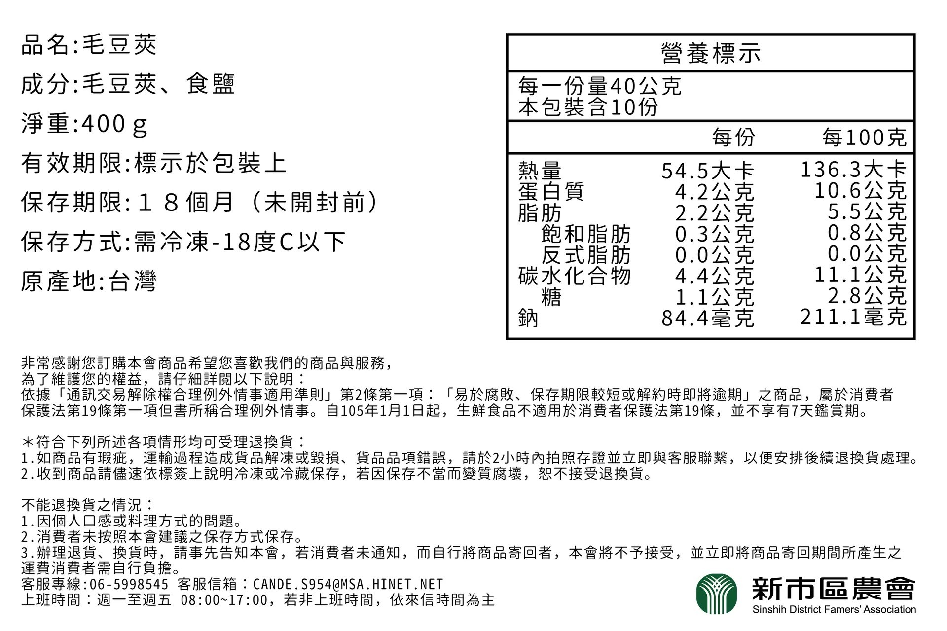新市農會毛豆莢(400g)