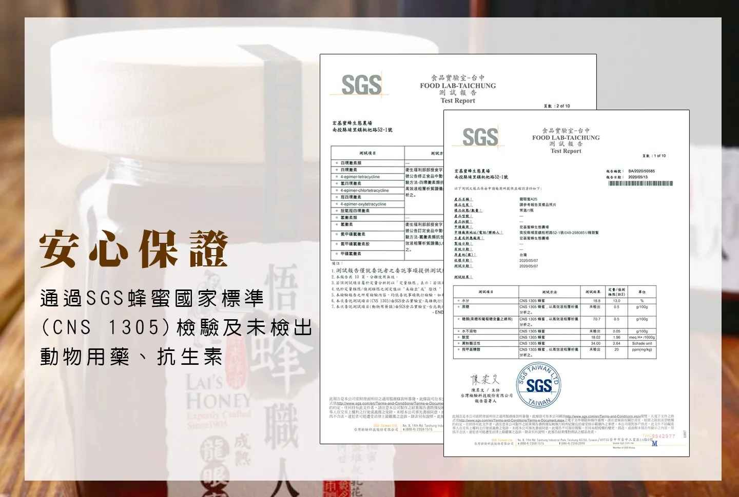 宏基蜂蜜來源以台灣蜂蜜為主,合作的蜂農皆為宏基蜜蜂親自品鑑、確認蜂蜜來源,堅持以《自然農法》產出優質高酵素蜂蜜!為讓消費者可以吃到好且安心的蜂蜜,每批蜂蜜皆通過SGS、TUV(杜夫萊茵)、中央畜產等第三方檢驗,無農藥殘留且符合/超越國家CNS1305標準,並通過ISO22000、HACCP及HALAL國際食品管理證照,嚴格控管各蜜源蜂蜜純正品質。