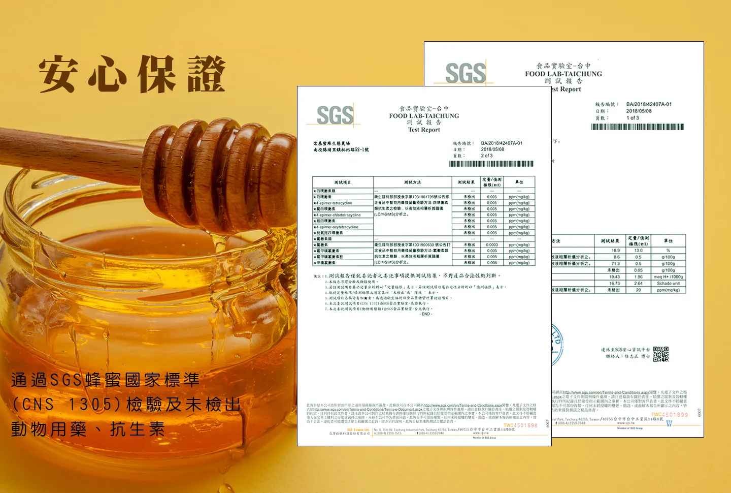 宏基蜂蜜來源以台灣蜂蜜為主,合作的蜂農皆為宏基蜜蜂親自品鑑、確認蜂蜜來源,堅持以《自然農法》產出優質高酵素蜂蜜!為讓消費者可以吃到好且安心的蜂蜜,每批蜂蜜皆通過SGS、TUV(杜夫萊茵)、中央畜產等第三方檢驗,無農藥殘留且符合/超越國家CNS1305標準,並通過ISO22000、HACCP及HALAL國際食品管理證照,嚴格控管各蜜源蜂蜜純正品質。