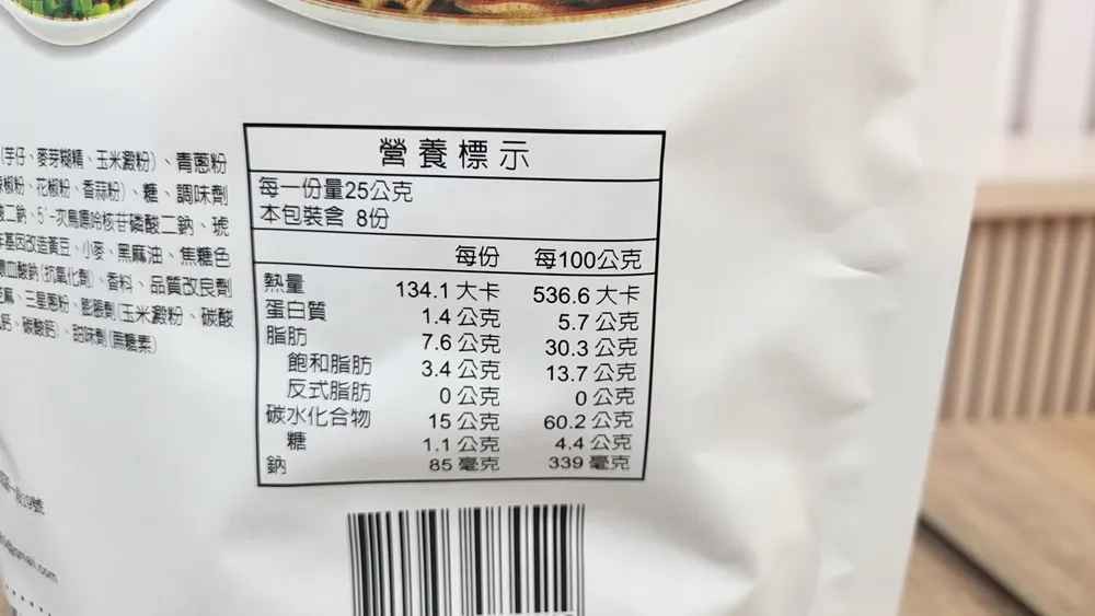 成分: 麵粉、精製棕櫚油、砂糖、椒麻風味調味粉、鹽、香辛料、調味劑、豆瓣粉、香料、品質改良劑、珠蔥片、三星蔥粉、膨脹劑、甜味劑
