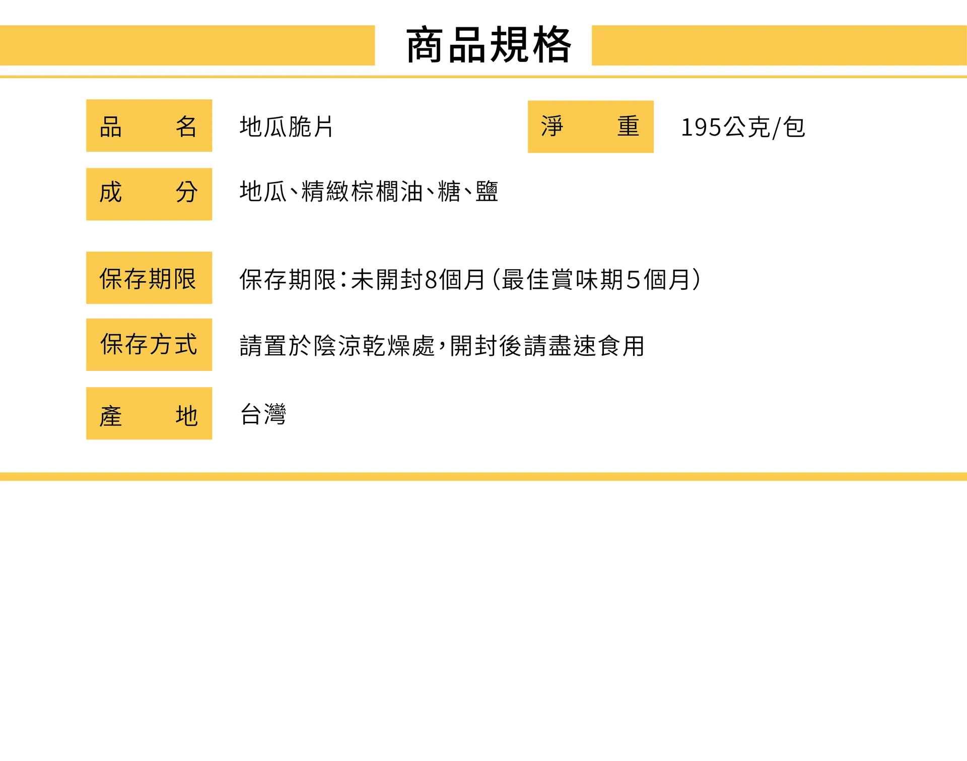 成分: 甘薯、精製棕櫚油、糖、鹽