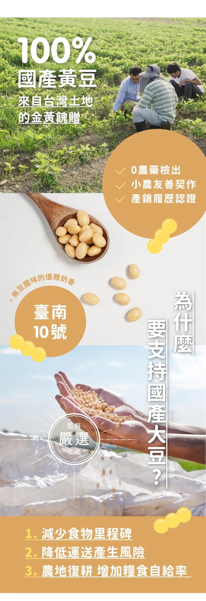 選用臺灣在地小農可溯源的非基改黃豆