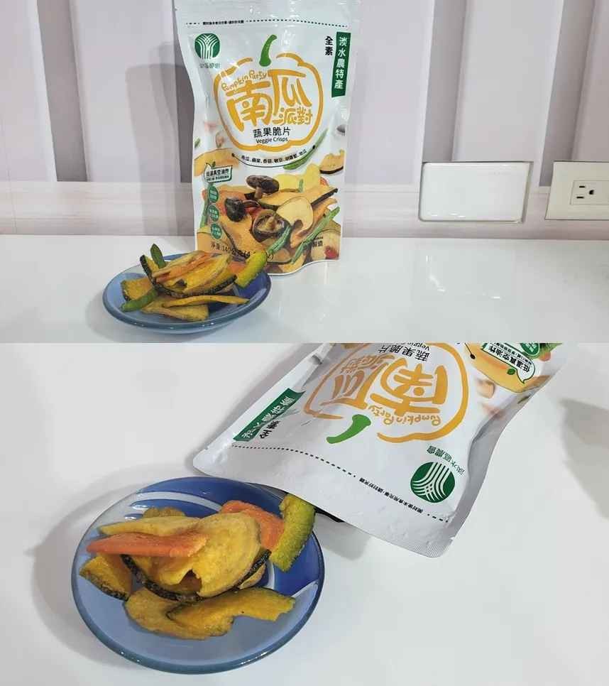 為了推廣在地南瓜,淡水農會推出新款南瓜加工品「南瓜派對─蔬果脆片」,內有在地南瓜搭配5種蔬果,全程不添加任何調味料或化學添加物,呈現純粹的口感與味道。