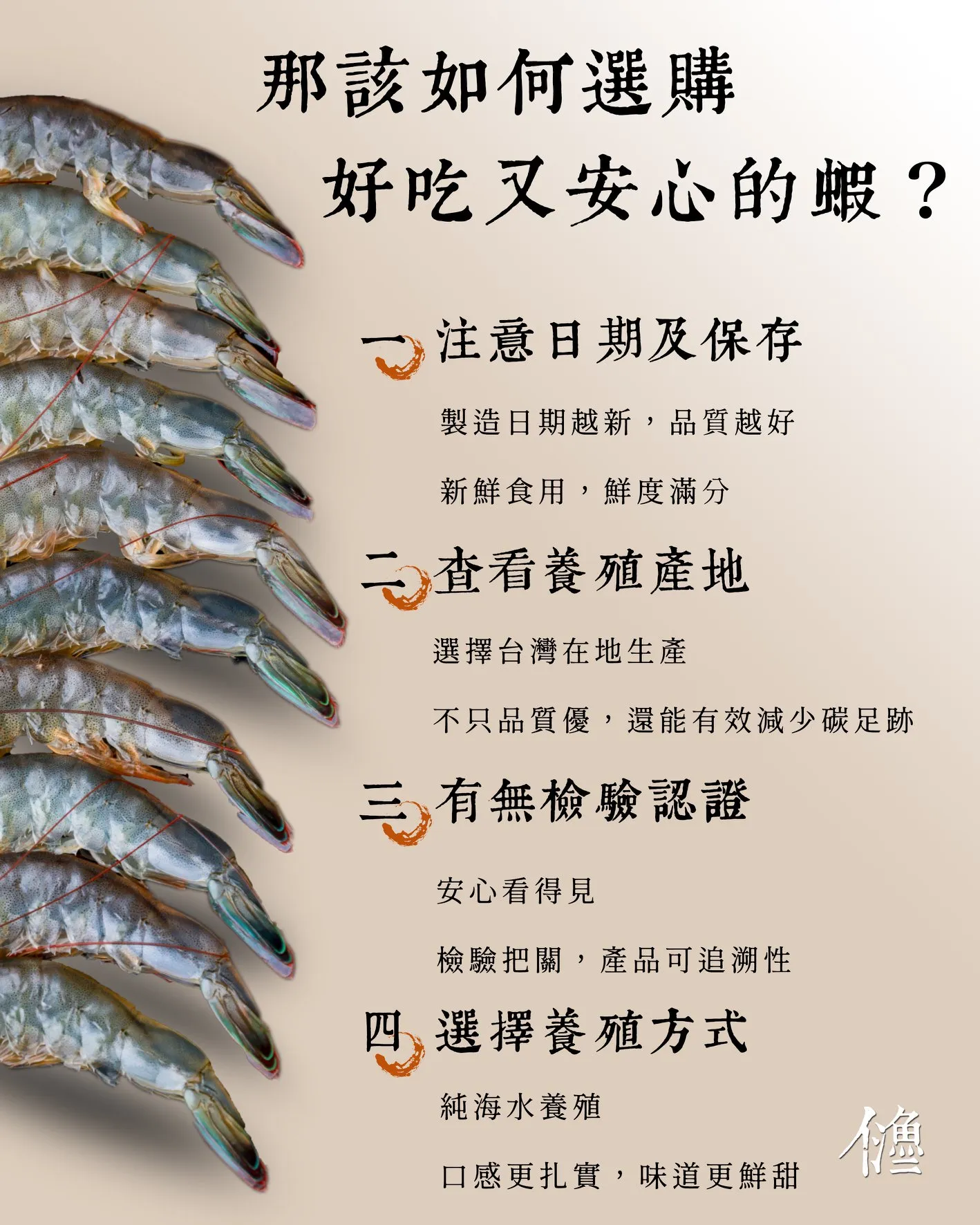 漁仁由海洋大學的幾個大男孩組成,用一顆對海洋濃烈嚮往的心,秉持著「以仁為仁」的理念,尊敬及珍惜著每一個在養殖場成長的生命。他們將國外先進技術與無用藥的理念引入團隊,將養殖管理數據化,提升育成率,培育成讓人安心放心的漁仁無毒白蝦。
