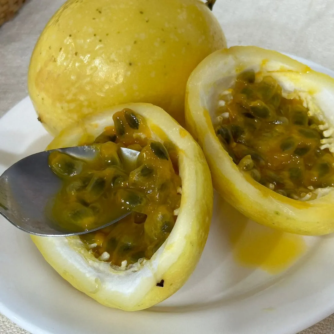 濃郁的天然果香,吃起來酸甜有顆粒感,除了直接享用外,還可以製作成百香果茶!