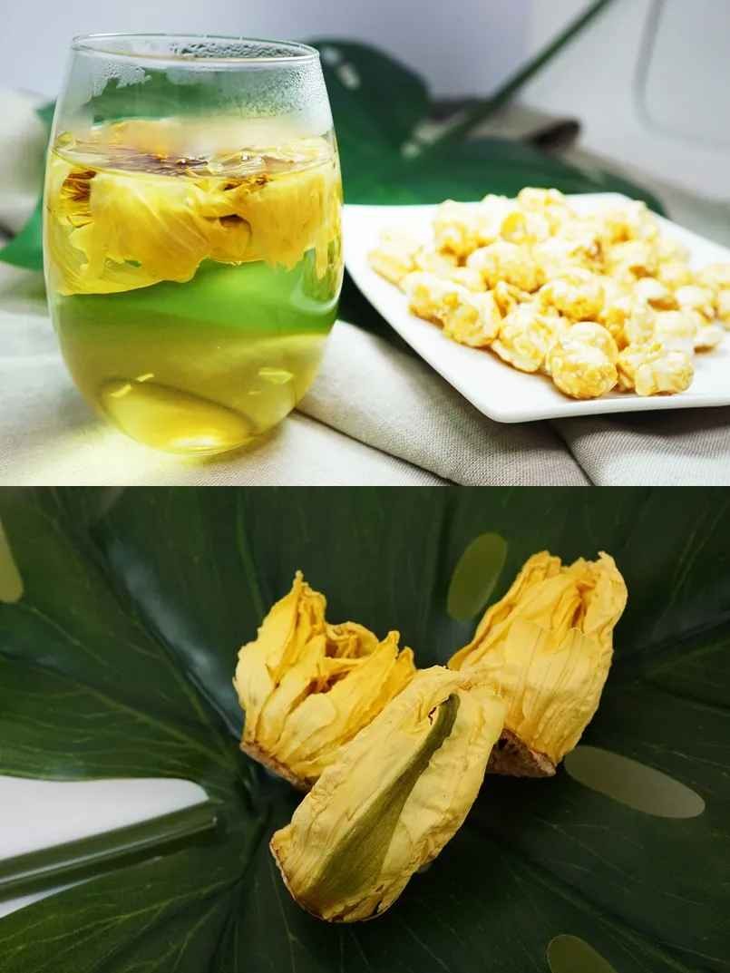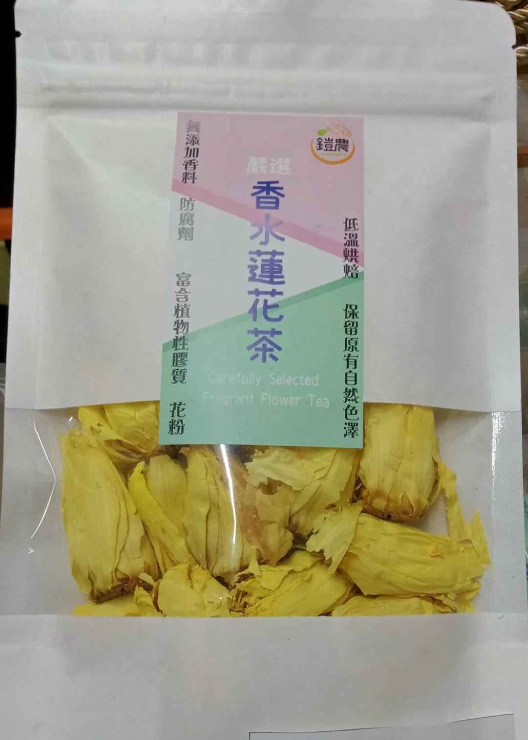 「香水蓮花茶」,新鮮採收後還要經過低溫烘烤,完整保留了香水蓮花的耀眼色澤、香氣~香水蓮花以「黃色」的最好喝,因為氣味足、不苦澀~而且不含咖啡因、不刺激,熱飲、還是清爽冰飲都很適合!
