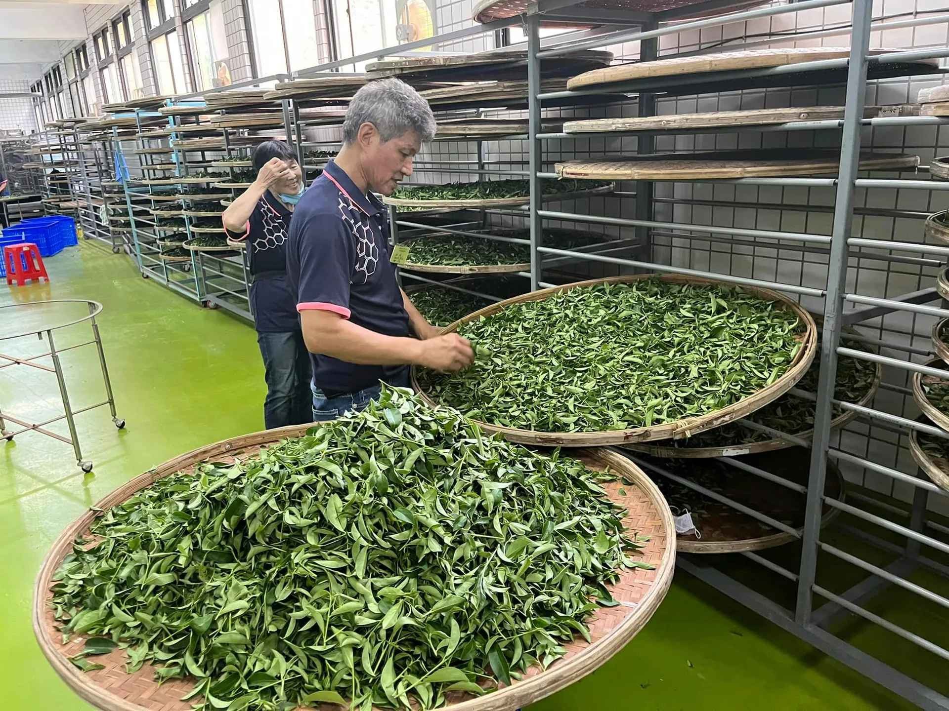 選用包種茶粉研磨,一咬下去口裡溢滿茶香