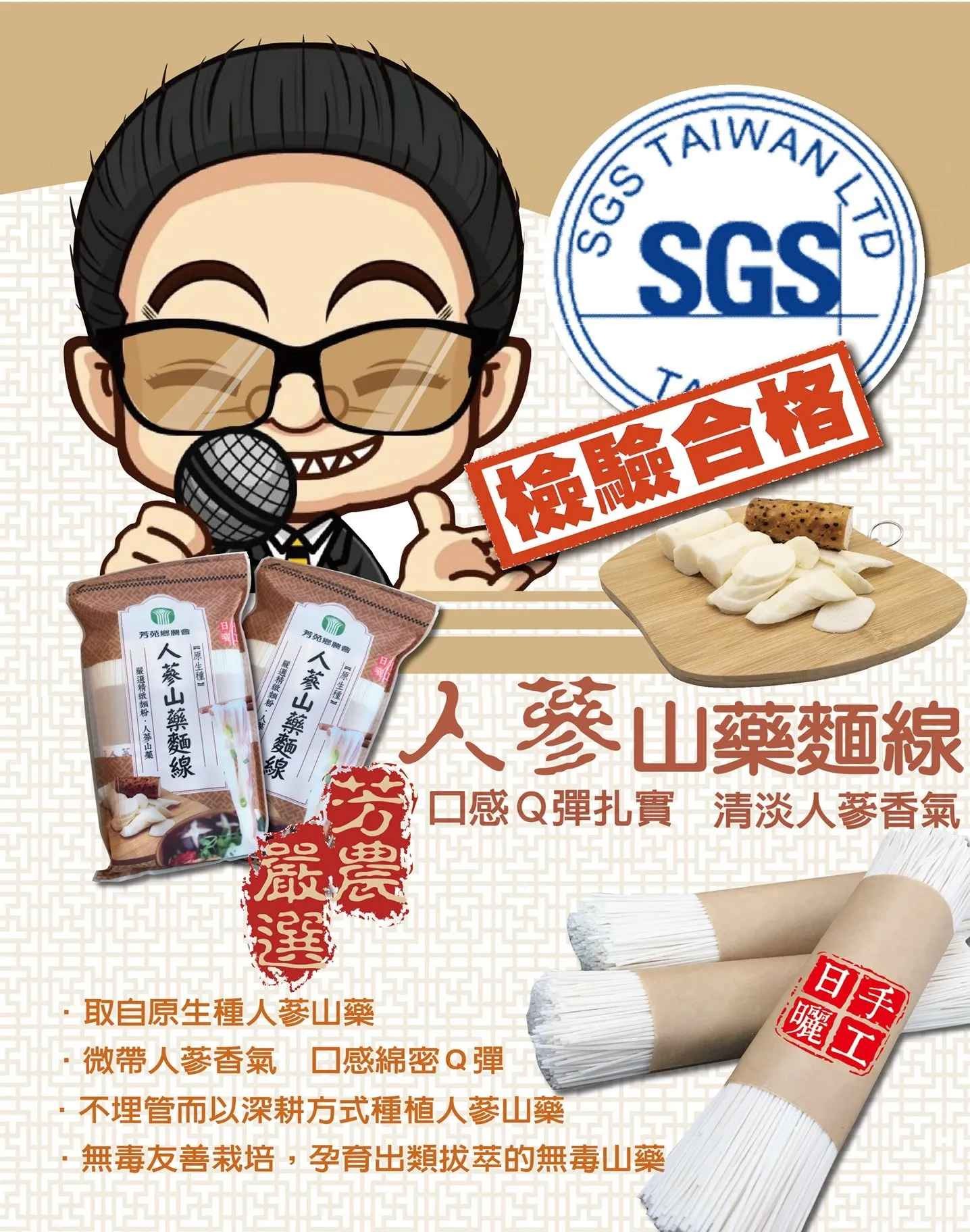 本商品取自原生種人蔘山藥,農友以友善栽培、不埋管而以深耕方式種植方法,孕育出類拔萃的山藥,搭配嚴選的精緻麵粉為原料,採獨特工藝處理,讓麵線口感Q彈綿密,微帶清淡的人蔘香氣,營養豐富,是理想的麵食佳品!