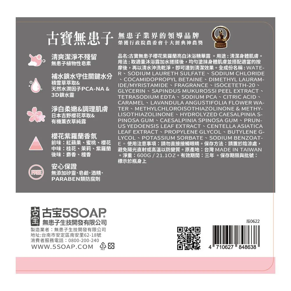 商品品名:櫻花紫羅蘭亮白沐浴精華露