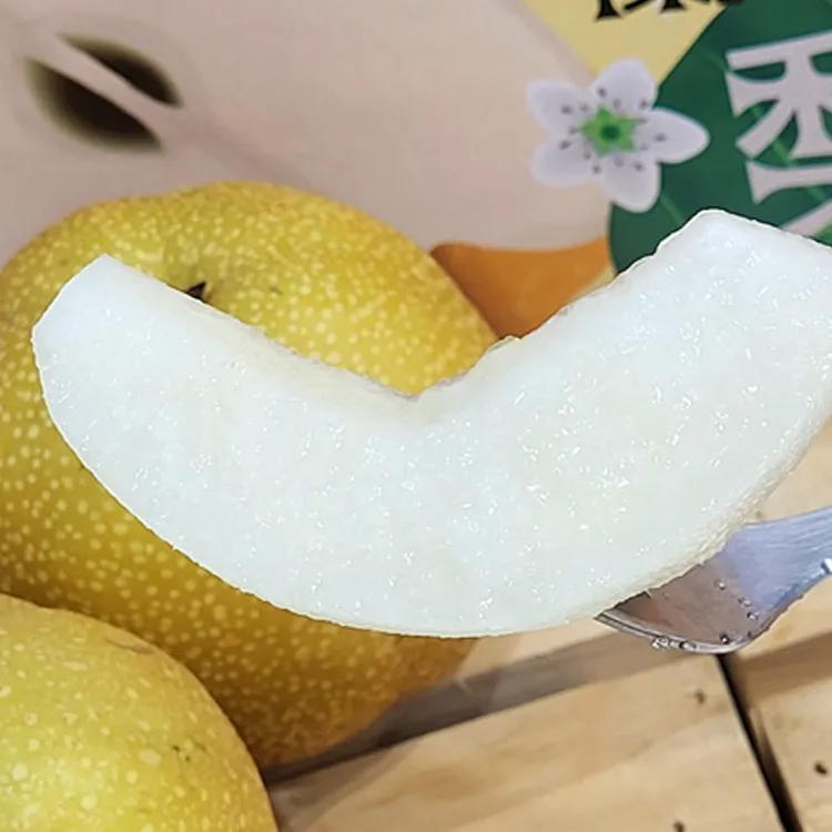 外皮為黃皮,果皮薄且果皮上帶有明顯的白色小斑點,果型圓潤,果肉細緻,甜美且多汁,帶微微果酸及優雅果香,梨味重且氣味清甜,
