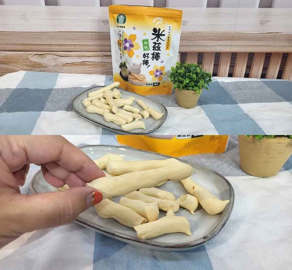 「米茲棒」是採用天然稻米澱粉所製作,成分天然健康,口感又比較酥脆,「米茲棒」烘烤的原理是用麩化的過程,而非使用人造化學添加物,以天然健康的概念為發想