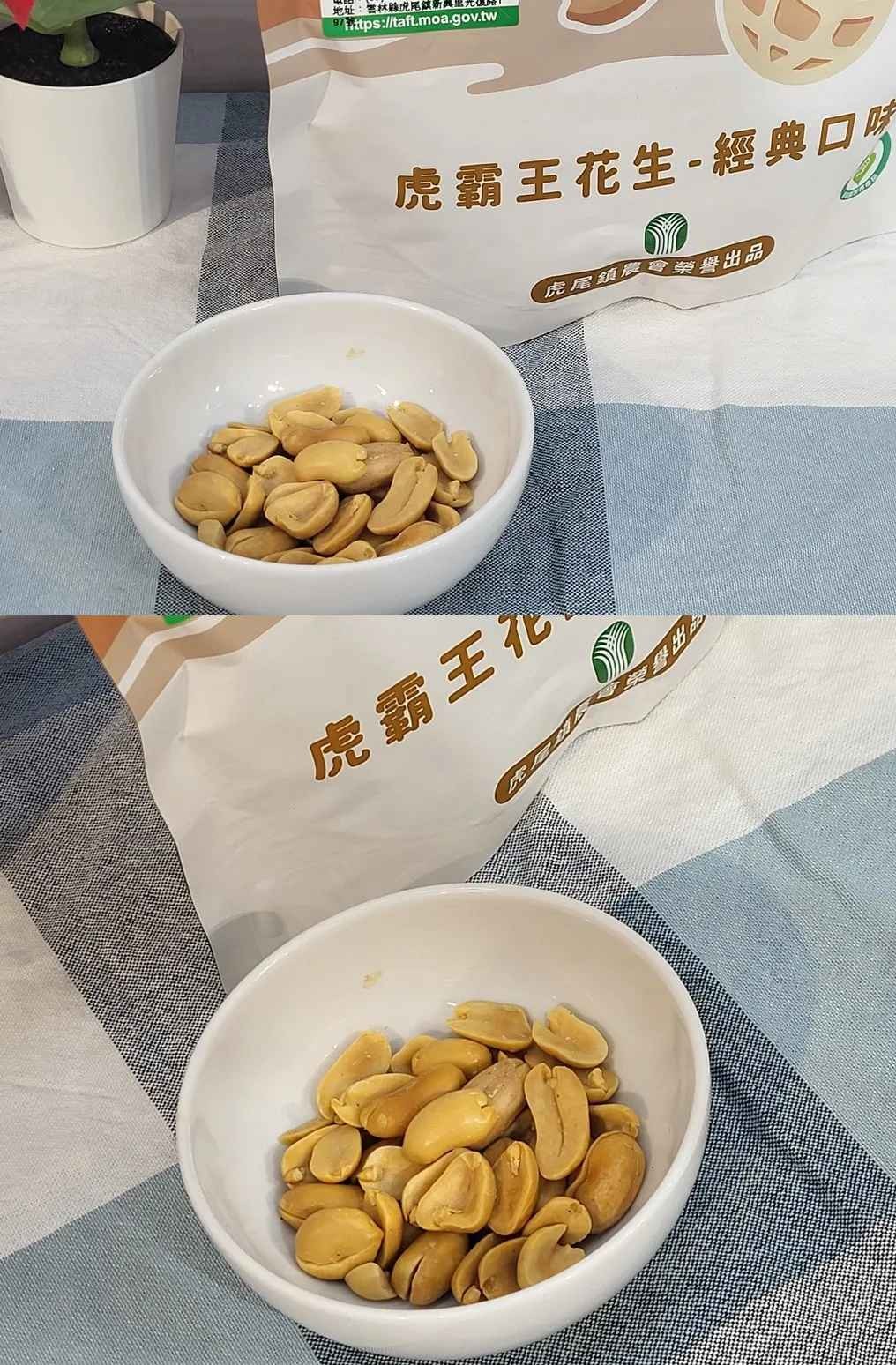 虎霸王花生分享包,結合國產台農14號花生,粒粒飽滿,特色是油脂香、營養豐富、花生仁扎實,以專業技術培育的種苗來穩定品質,每一粒皆經嚴格把關。花生的香脆滋味,越吃越涮嘴,讓您一口接一口,是聊天、泡茶、追劇必備的休閒零嘴,更是閒暇時解饞的小點心唷!