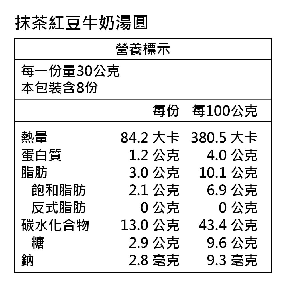重量:抹茶紅豆牛奶湯圓240g(8顆)X3盒。