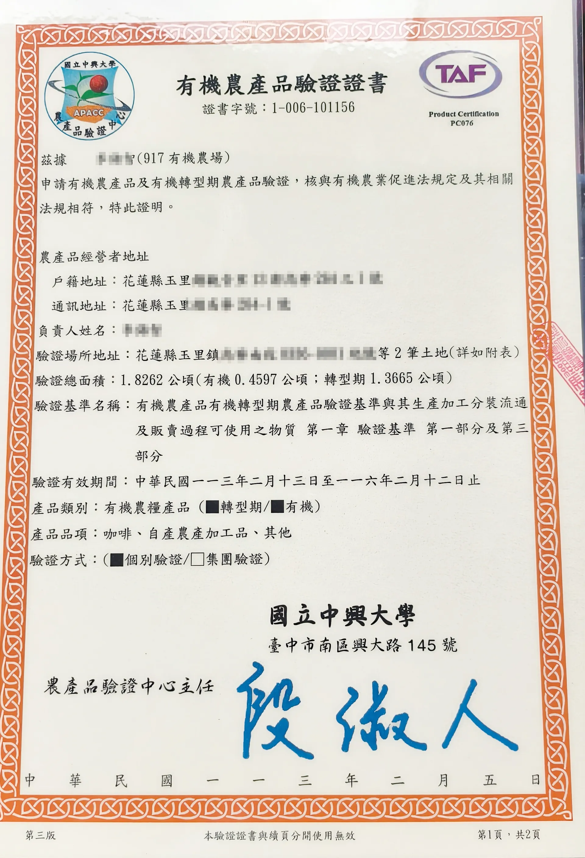 ★★ 榮獲2021年花蓮縣精品咖啡評鑑 有機組 特等獎