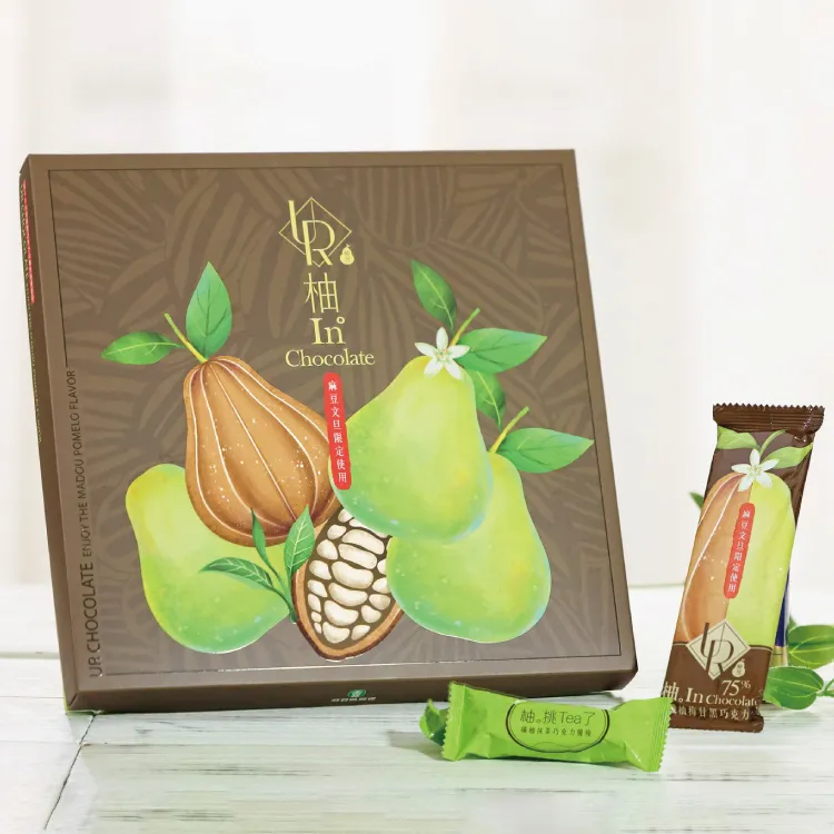 濃郁抹茶與白巧克力、米香、杏仁角、脆餅顆粒及麻豆農會梅柚片兒結合的層次滋味