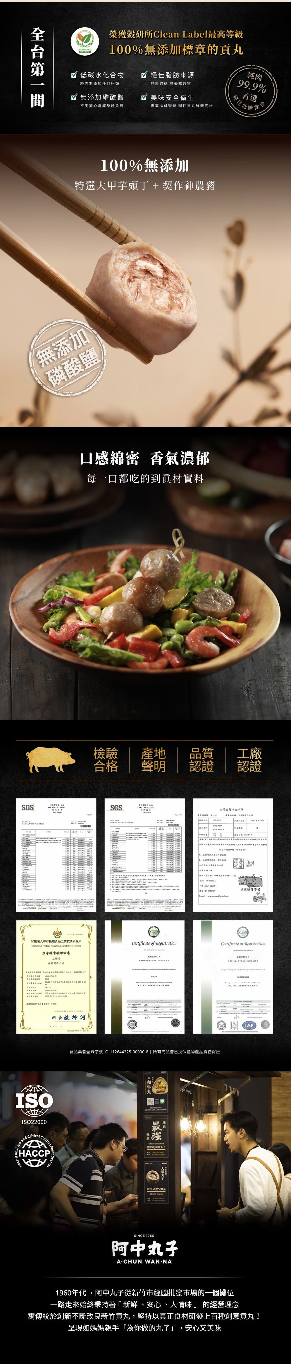 特選大甲芋頭丁,口感綿密且香氣濃郁,混和多汁的契作台灣豬,以60年傳承新竹貢丸匠技研製而成,不添加磷酸鹽及香精,每一口都吃的到真材實料!