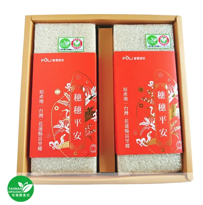 品種為高雄139,採用富里鄉當地的有機米,香Q好吃。包裝喜氣討喜,是過年、過節送禮的第一首選。送禮送富麗穗穗平安米,送好米、送平安。