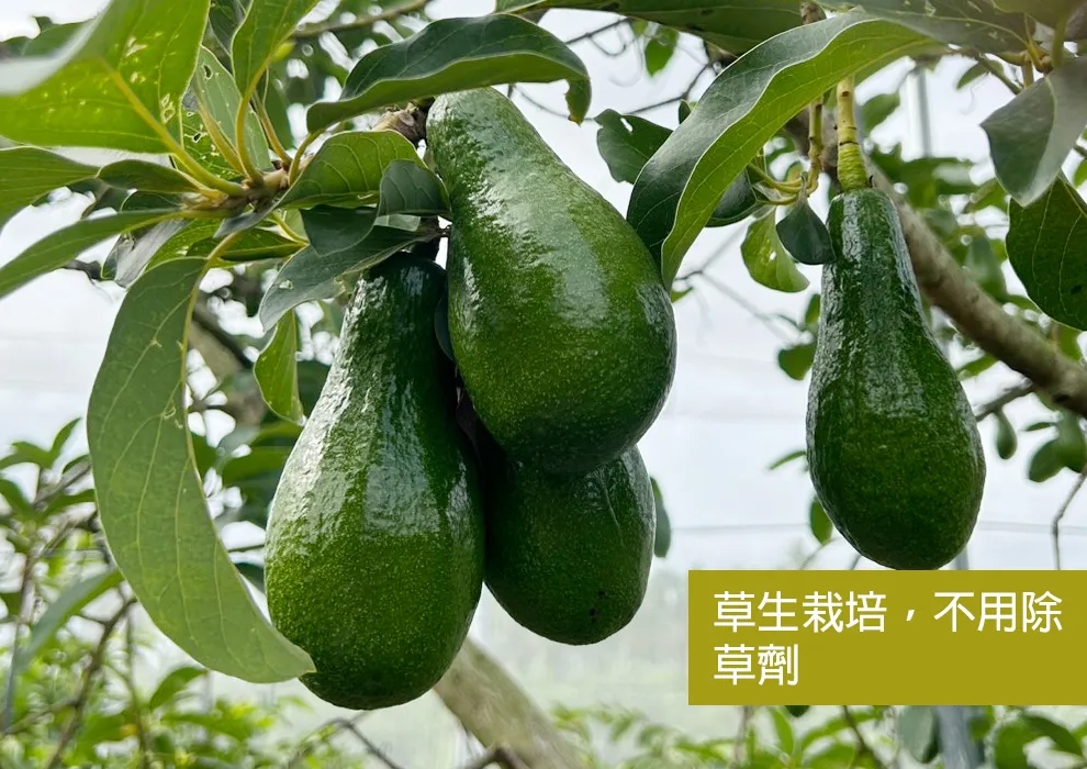 近年張大哥開始種植酪梨,採取草生栽培、不使用除草劑的友善方式種植,並堅持於8分熟採收,讓酪梨的油脂自然醇厚、口感更佳。