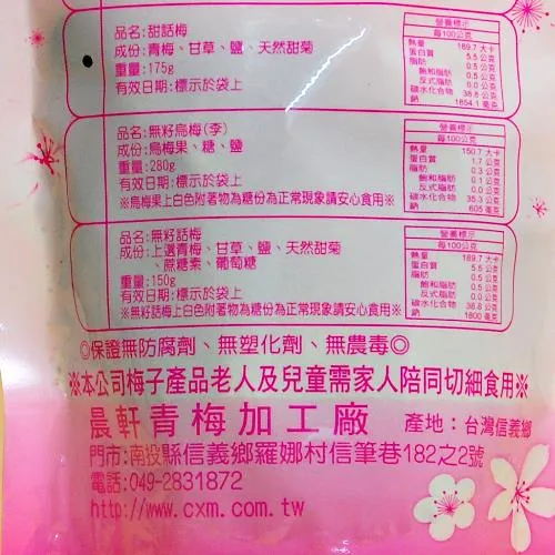 廠商名稱:晨軒青梅加工廠(晨軒梅機能食品)
