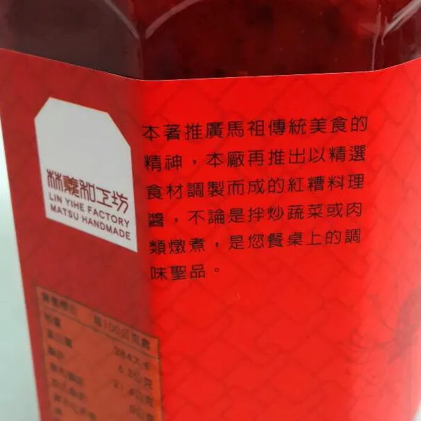 紅糟是天然食材,而馬祖林義和工坊將地方飲食核心-紅糟,以方便料理的熟糟調理醬方式呈現給國人。