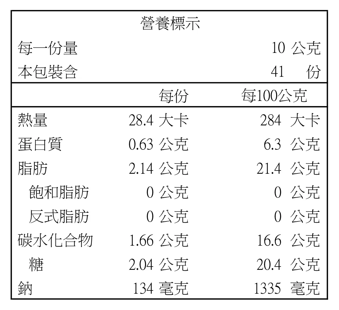 內容物:紅糟、砂糖、沙拉油、鹽、薑末、蔴油、味精。