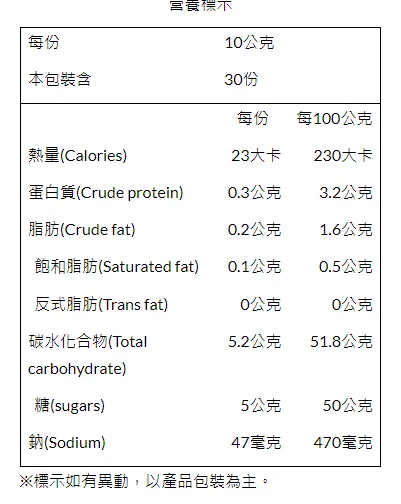 【注意事項】白色結晶體為蔗糖,屬自然現象,請安心食用。