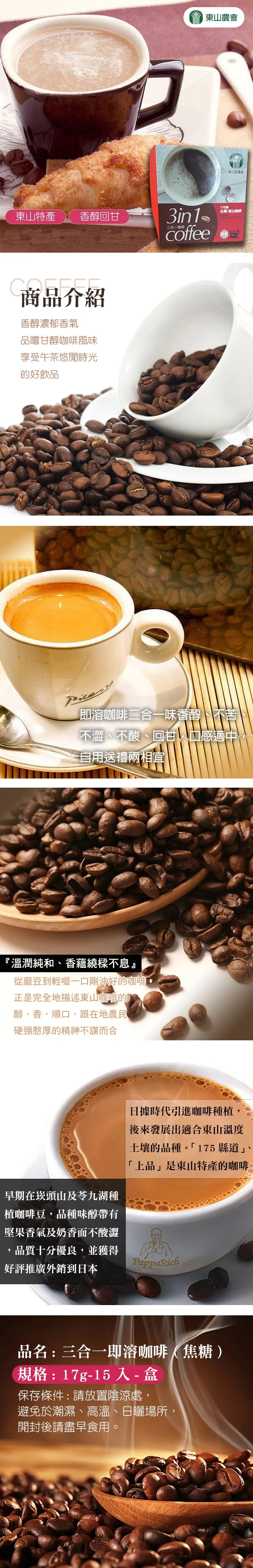台南縣東山鄉農會出品,東山焦糖即溶咖啡(3合1)~