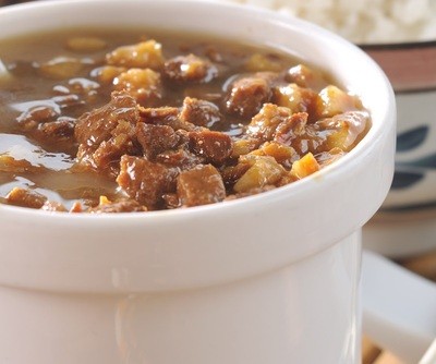 將肉丁翻炒後再加入滷汁熬煮8小時以上,用心做出好吃美味又健康安全的料理,