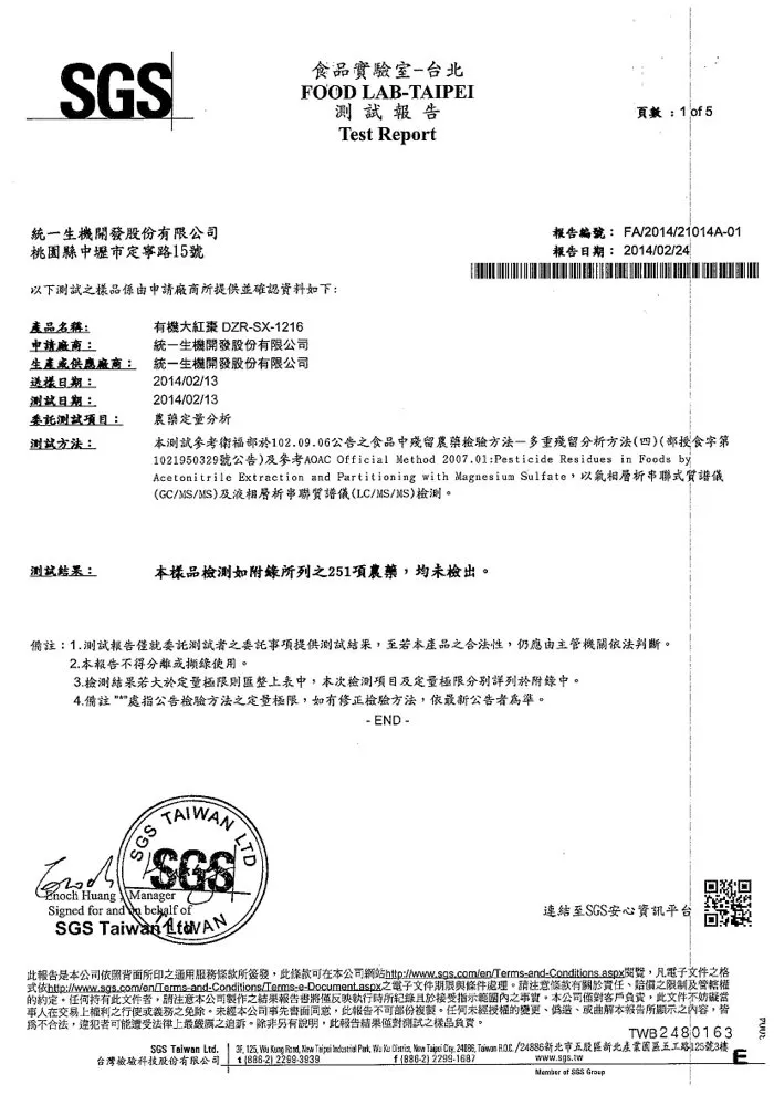 有機紅棗從農場、包裝、運送、入庫,層層把關,經SGS檢驗無農藥檢出,食用安心有保障。