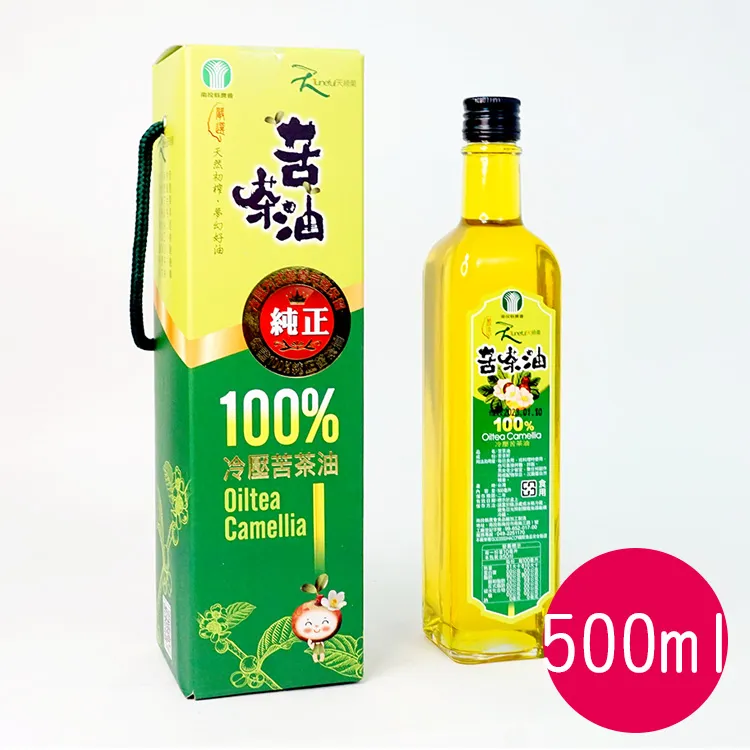 苦茶油是由油茶樹採子精製而成的純植物性油脂,在古時候喻為大自然的稀世珍品.南投縣農會為了配合政府發展精製農業,承台灣省政府農林廳暨南投縣政府輔導,於民國七十五年投下巨資設廠,以「低溫」萃取製成品質精純可靠的苦茶油!