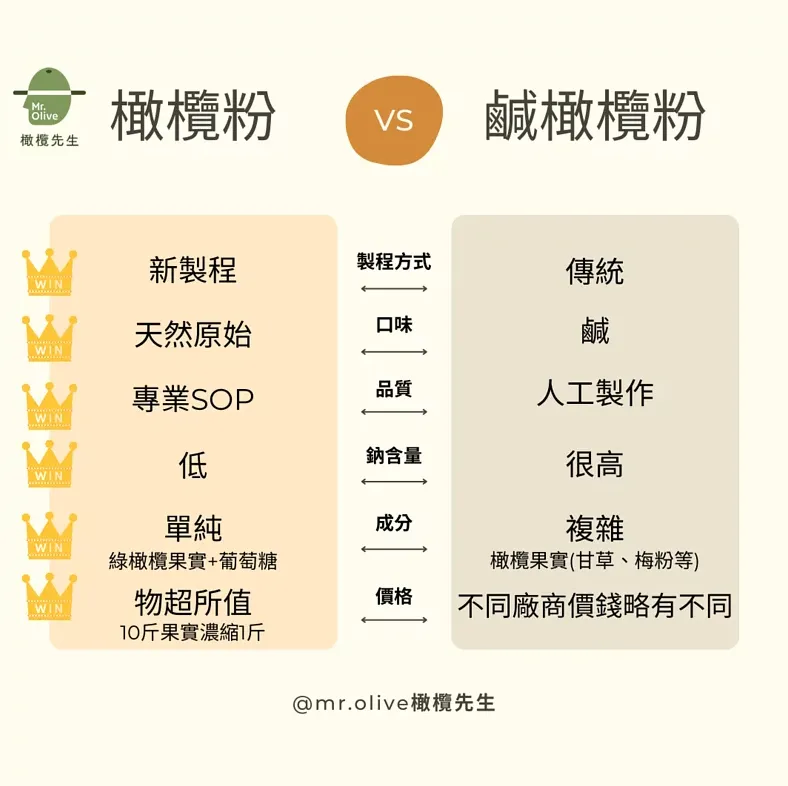 保健橄欖粉為高溫製程,口感上酸澀回甘。