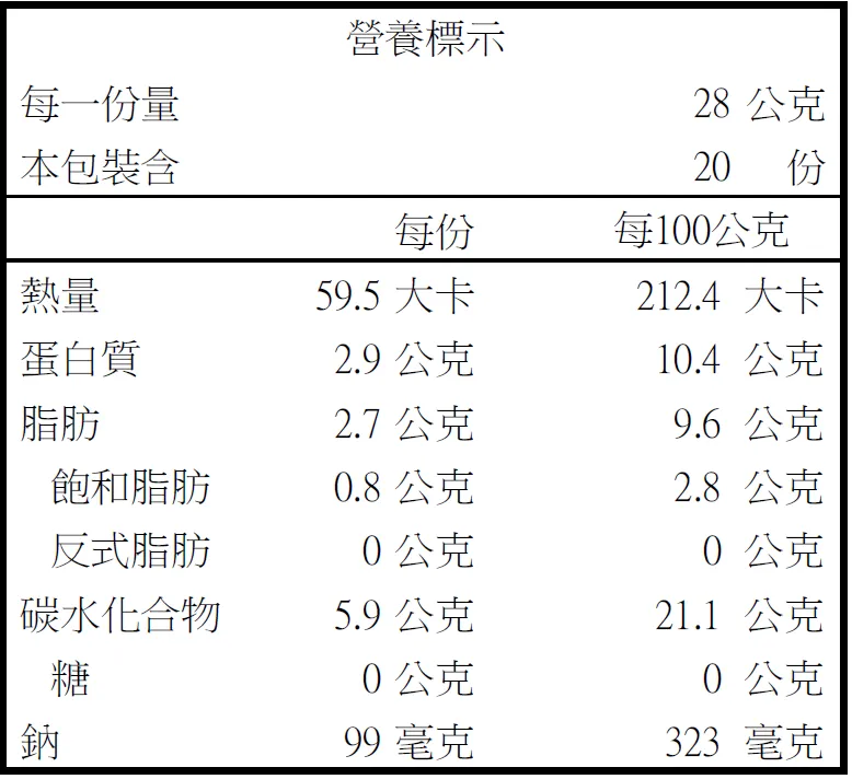 注意事項:本產品含蛋、麩質(小麥)、大豆製品、芝麻製品,對此過敏或有特殊體質者請避免食用。