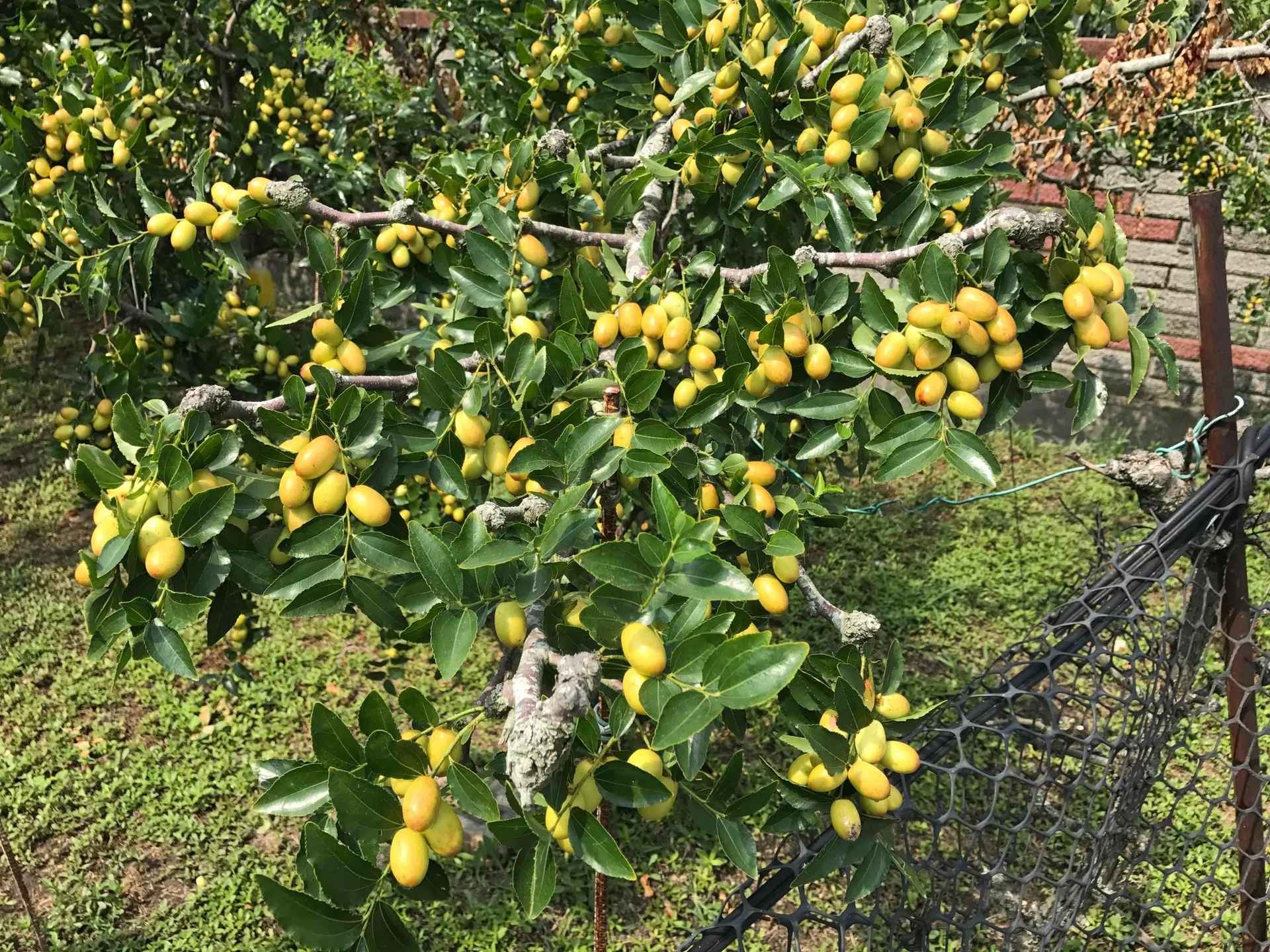 不知曾幾何時,我們開始能夠在台灣品嘗到在地新鮮的紅棗,聞著日曬紅棗的香氣,想像著一碗冰涼銀耳紅棗湯,如此的享受。而現在我們可以在自家廚房品嚐到在地的紅棗,這都端靠苗栗公館這群辛勞的農友!今天要介紹給大家的是苗栗公館生產的日曬紅棗。阿賢伯是農友爸爸的名稱,為了感念爸爸對土地的熱愛與傳承,於是用父親的名稱為果園命名。身體硬朗的阿賢伯早就將農務工作放給兒子黃大哥,而現在黃大哥接手了種植幾十餘年的紅棗園,讓這股紅棗香氣持續飄散在七月的夏日中。石圍牆庄種植,堅持全程不用藥的紅棗。苗栗公館的石圍牆庄是全台灣生產紅棗的最大產區,天時地和的條件在這裡生養著最優質的紅棗。沿著後龍溪旁的沖積平原有著蘊含豐富礦物質的砂質土壤,這塊寶地四季吹拂著後龍溪的河風與雪山山脈沁涼的山風,天然環境彷彿就是為了棗樹而創造,也成就了石圍牆庄紅棗之鄉的美名。據言,許多人從石圍牆帶出種苗,在相似環境希望種植出一樣優質的紅棗,最後的結果率都甚低,最後無疾而終。我到的那天,正是生鮮紅棗初初開始採收的時候,黃大哥隨手摘下一旁結滿些許紅色的紅棗就塞向嘴裡,「在田裡,口渴的時候就摘樹上的果子吃。自己的也沒用藥,沒什麼忌口」大哥這樣說著又從樹上摘了幾顆果子遞過來。同樣在石圍牆庄種植紅棗的黃大哥,堅持種植全程不用藥,要用最安心的方式提供高品質的紅棗果子。生鮮紅棗怎樣最好吃?咬下一口清脆甘甜的紅棗鮮果,竟跟過去我吃到的紅棗鮮果全然不同。「很多人吃過一次的紅棗鮮果,說是很難吃就再也不買了!」還沒等我問出口,大哥搶先我一步說出了我的疑問。「你知道為什麼嗎?」「因為他吃的是還沒成熟的紅棗!」原來很多人要求方便、不願一顆一顆挑選,就在紅棗還沒成熟時就全部摘取,此時採收下來的紅棗是青黃色的,許多消費者覺得這樣是最嫩、最新鮮的;卻不知道成熟的紅棗是黃中帶紅,開始有些微轉色的紅棗才會有甜味,這時候的紅棗才是最好吃的!這也是大哥堅持在欉紅、再由人工採收的原因。日曬紅棗的香氣每到了紅棗大產的時分,石圍牆的家戶外總鋪滿著一個個曬滿籮筐的紅棗,那份香氣就飄灑在空中,紅棗產期時更是瀰漫在整個村莊之中。日曬紅棗是苗栗公館的特色產物,好的紅棗要在樹上完熟,採收之後再經由五至七天的全日曬,才能將紅棗的甜份鎖在那顆小小的紅色身軀內。紅棗富含豐富的維生素及礦物質,其中又以維生素C為高,故也有「台灣紅寶石」之稱。
