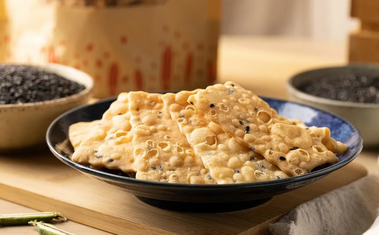 本產品來自胡麻的胡鄉--- 臺南西港, 胡麻種子健康飽滿,農會產銷班自行生產 焙炒芝麻與麵粉攪拌, 切成塊狀後再 酥炸成形,帶點麵皮香與芝麻香,吃起來脆口 ,是配茶與咖啡的小茶點。