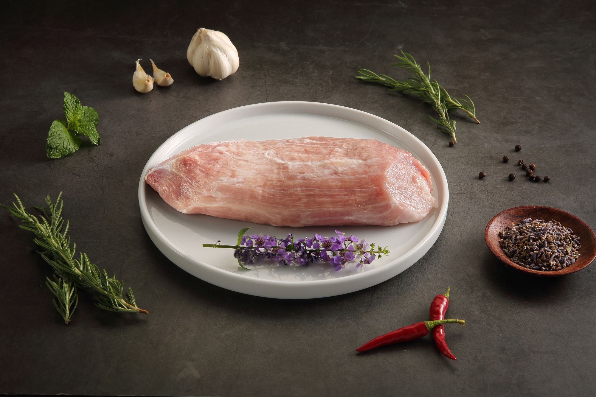雪花腿心,其外型細長略尖,形似老鼠,因而得名。與一般腿肉相比,雪花腿心的彈性與嫩度更佳,不僅鮮甜,還能在烹調過程中保持良好口感。雪花腿心適用各種料理模式,煎、蒸、烤、炸都可以,切片料理後,就能感受到雪花腿心獨有的滑嫩與甜美感,高級餐廳或專業肉舖子的隱藏版部位。