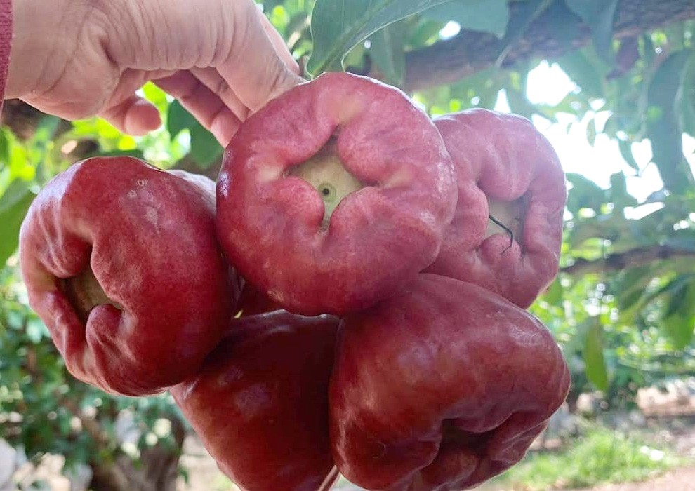 從蓮霧到芒果,每一顆果實都承載著土地的滋養與農人的汗水。其中最令人驚艷的,就是色澤如黑寶石般閃耀的——黑珍珠蓮霧。這是近年備受注目的蓮霧品種,外觀深紅接近黑色,果型飽滿渾圓、帶有自然蠟光,宛如珠寶般閃耀。咬下一口,水分豐富、果肉緊實,口感層次分明,堪稱蓮霧界的極品。