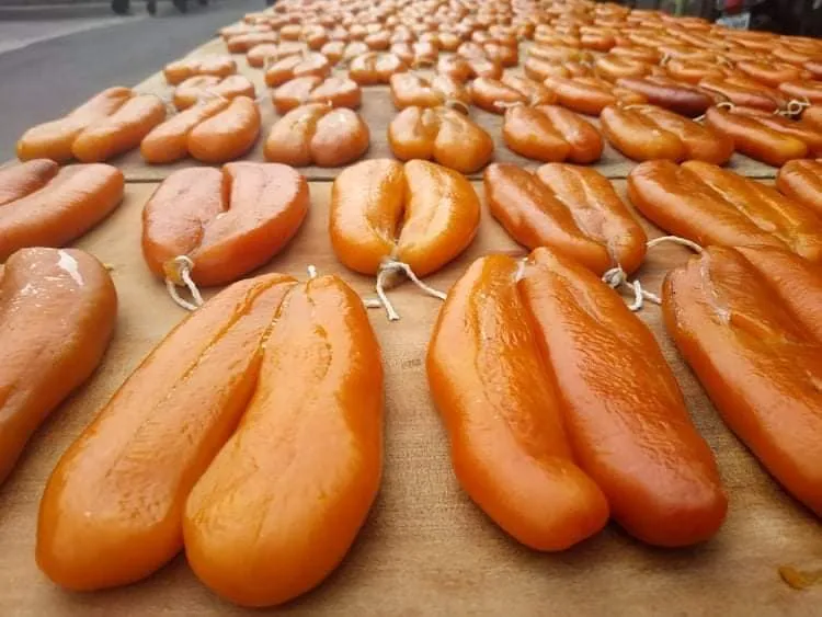 九降風黃金烏魚子得天獨厚由九降風吹拂日曬而成