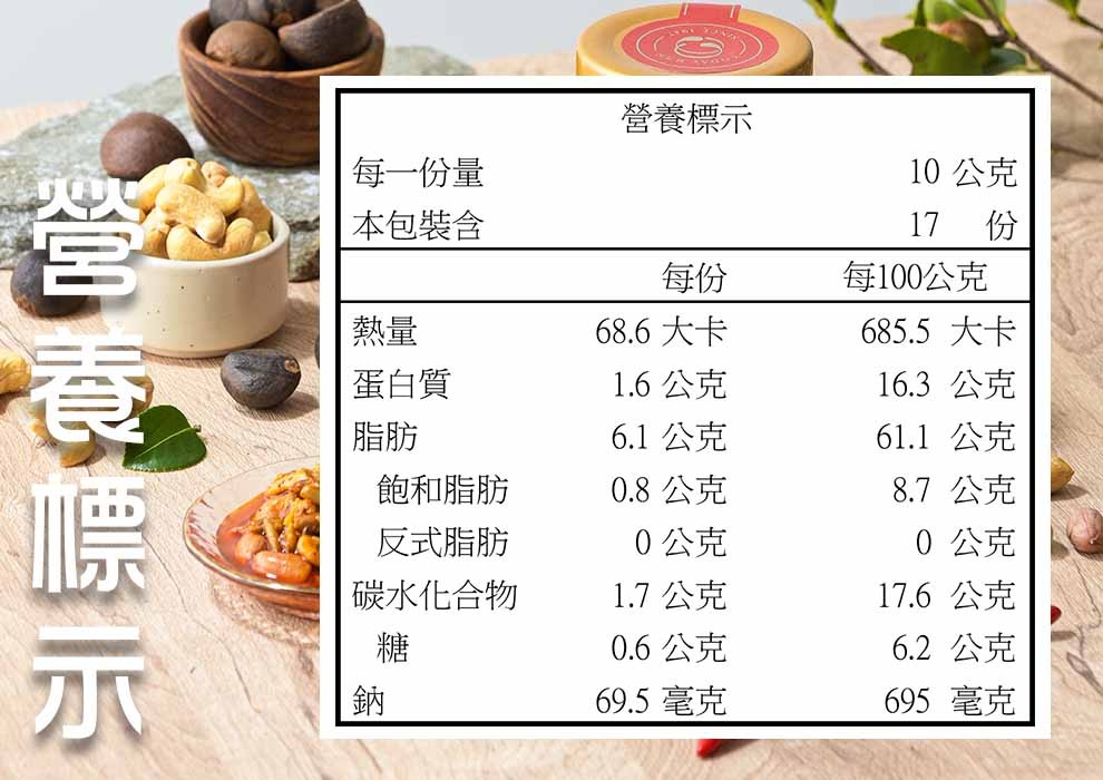 過敏原標示 / 本產品含花生、芝麻、堅果類,過敏者不宜食用。