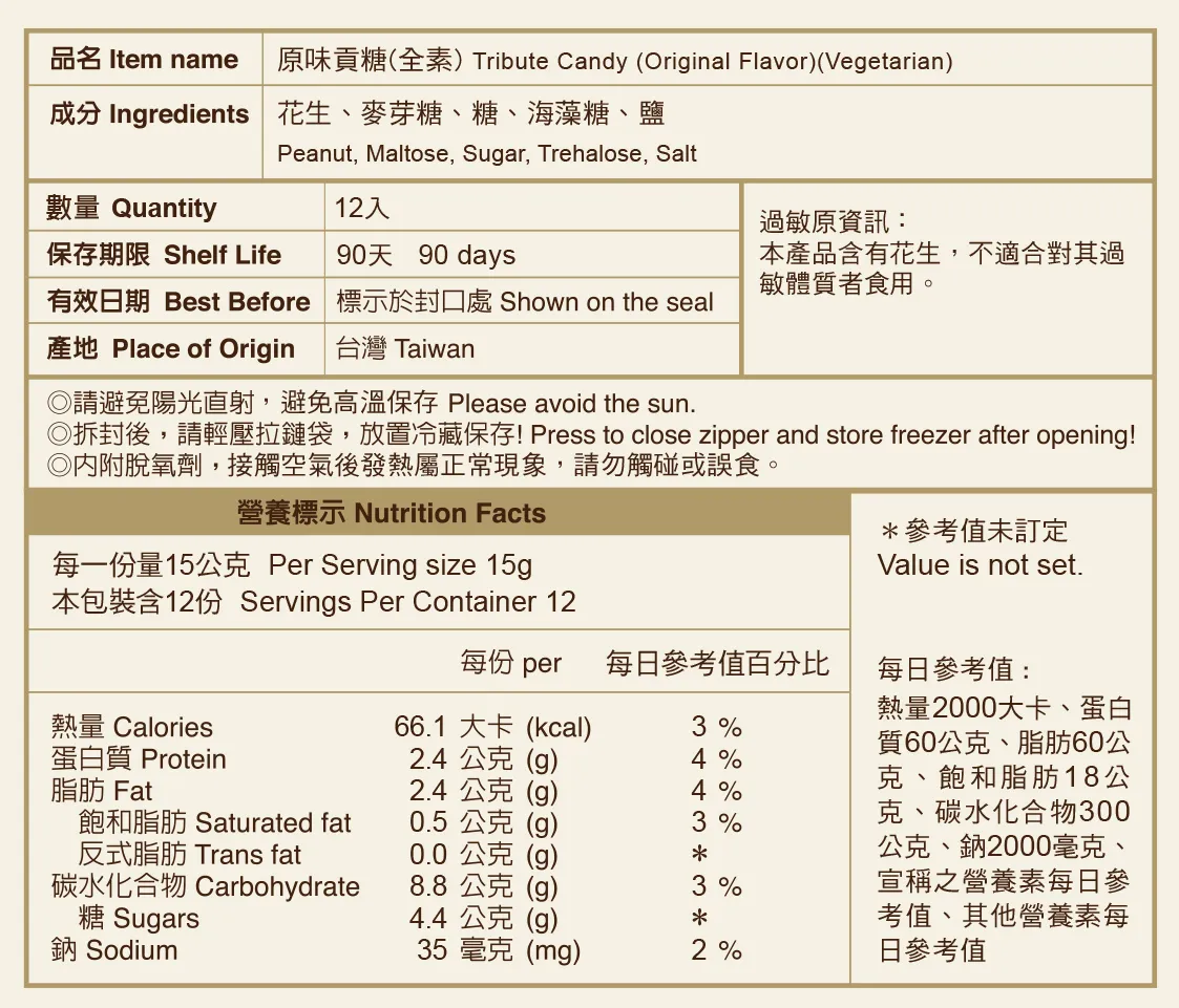 商品成份:花生、麥芽糖、糖、海藻糖、鹽