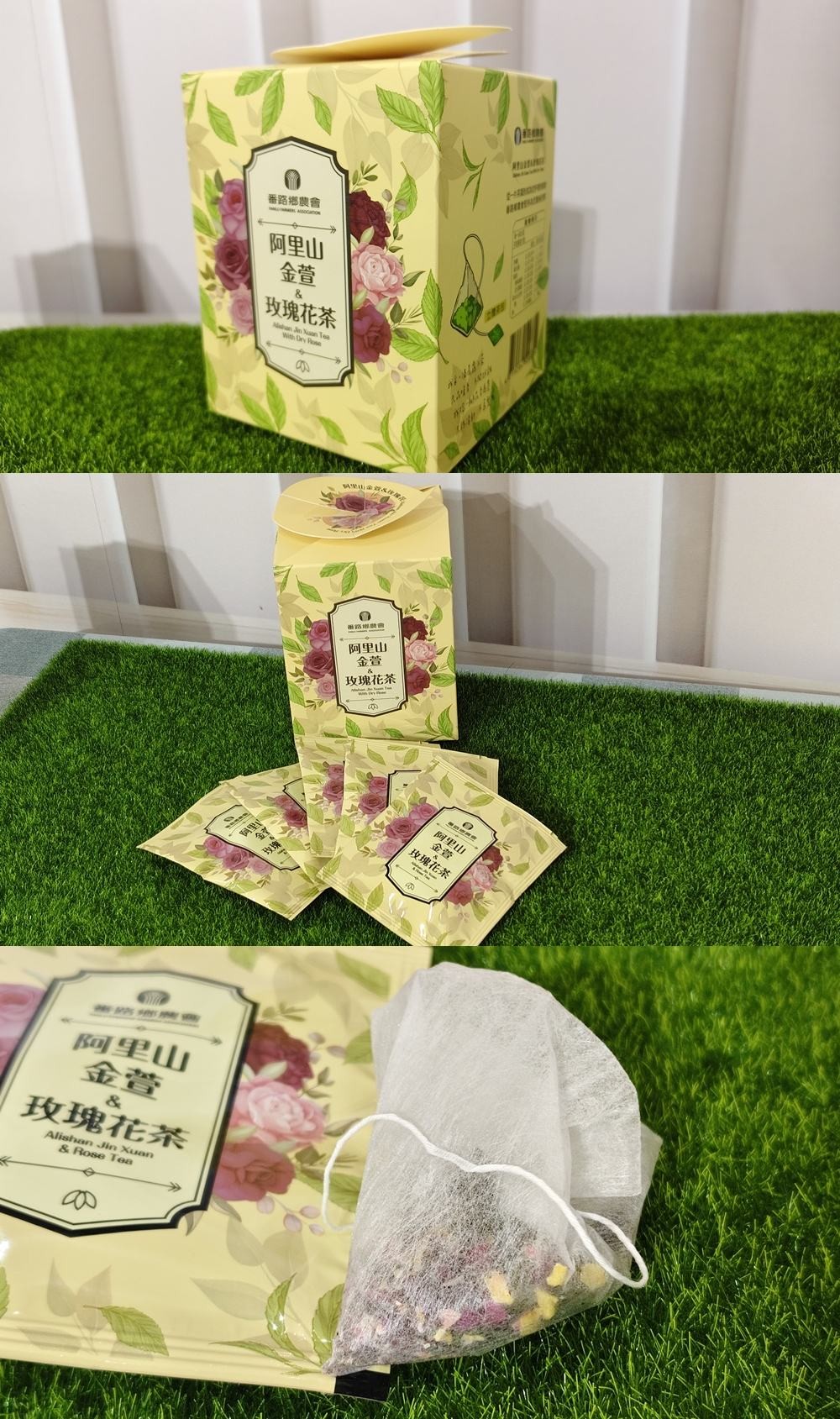 更與在地栽植之花農異業合作,將番路鄉阿里山100%手採茶葉(青心烏龍、小葉種紅烏龍、金萱茶葉)與番路鄉阿里山下生產之食用玫瑰花,融入年輕人喜愛的元素(花、安全、時尚),開發三款方便即時沖泡飲用的阿里山花茶,提供消費者簡約便捷的沖泡方式和輕鬆自在的喝茶體驗。