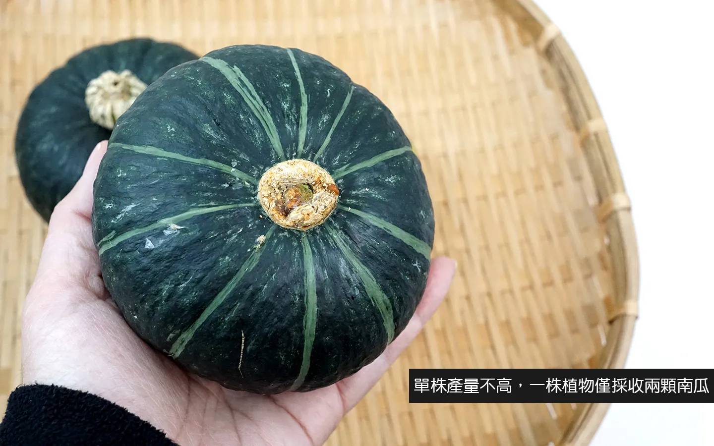 栗子南瓜栗子品種單株產量不高,平均一株植物僅採收兩顆南瓜,產量稀少、成本高!克服天災、蟲害,細心照看,致力於讓消費者都能吃到高品質的產品