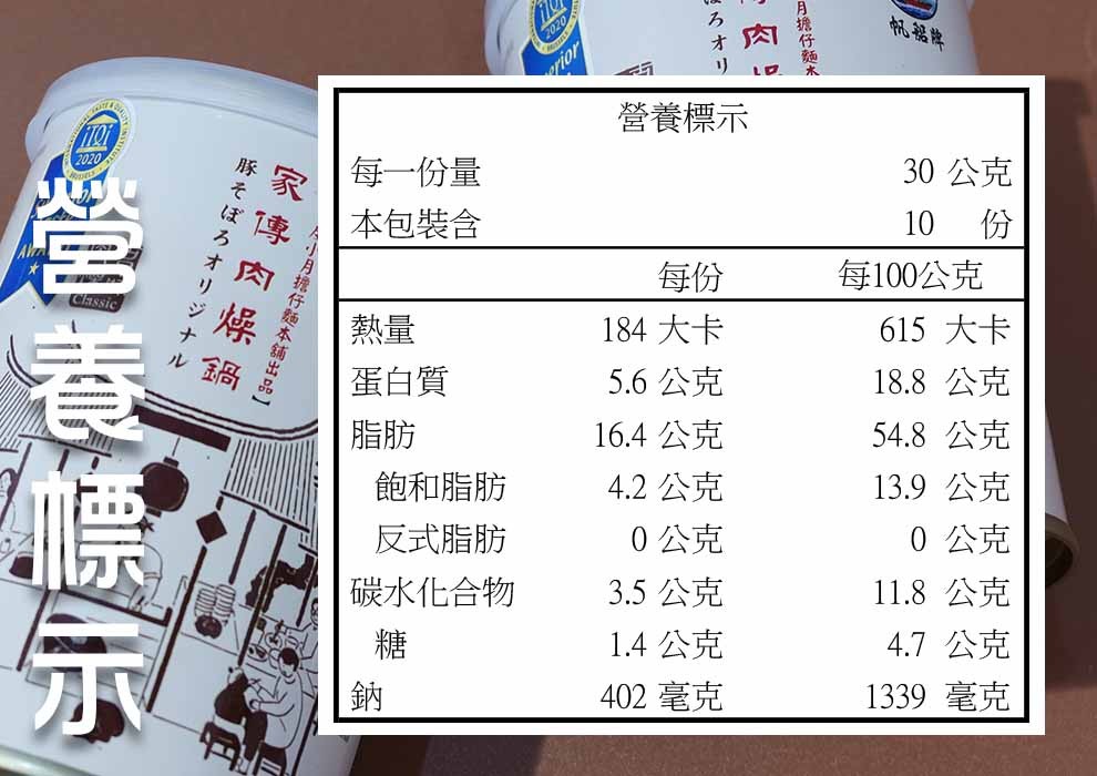成份:豬肉(台灣)、醬油、蔥酥(芥花油、紅蔥頭)、食鹽(鹽、碘酸鉀)